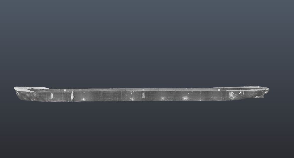 - Scheepsromp met laserscannen opgemeten toen het schip op de werf lag.