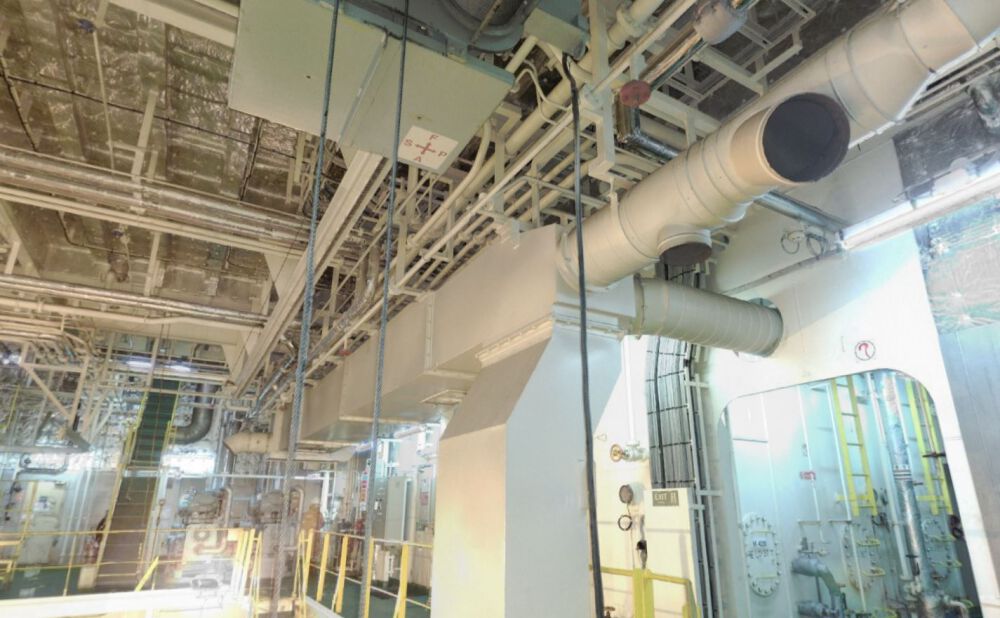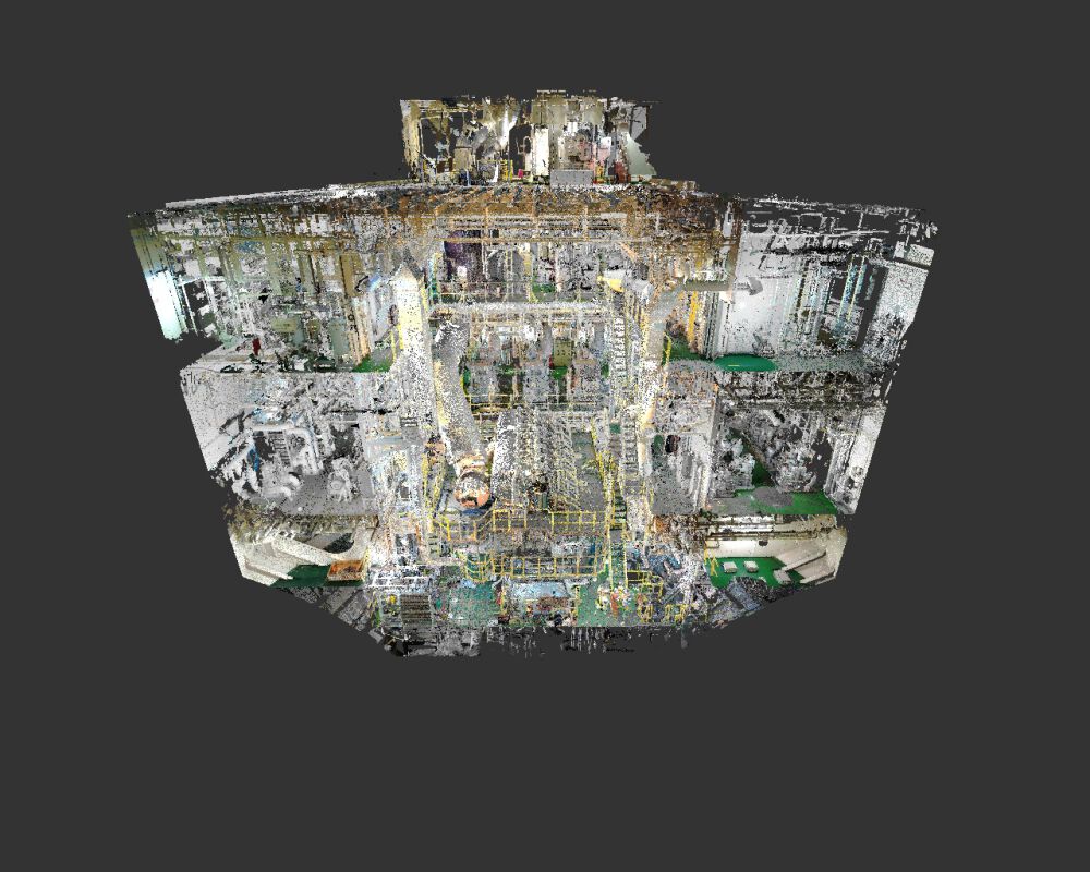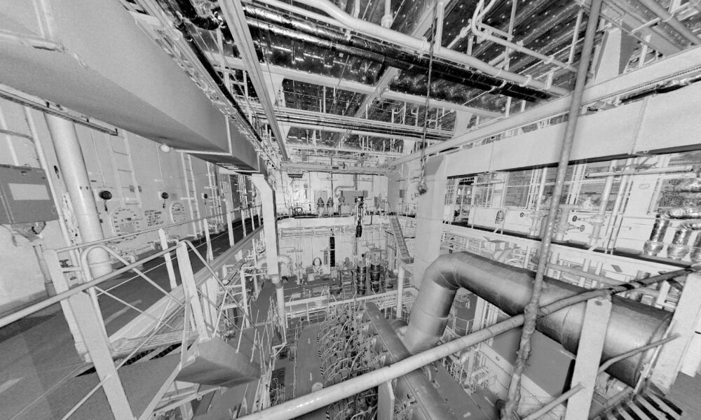 Volledige 3D scan van de machinekamer van een bulk carrier. Dit schip heeft een lengte van 230m en een breedte van 33m. Voor nieuwe leidingwerk was de huidige asbuilt erg belangrijk. Daarom hebben we de complete machinekamer ingescand. Zo kunnen er aanpassingen geëngineerd worden voor het Ballast Water Treatment System.